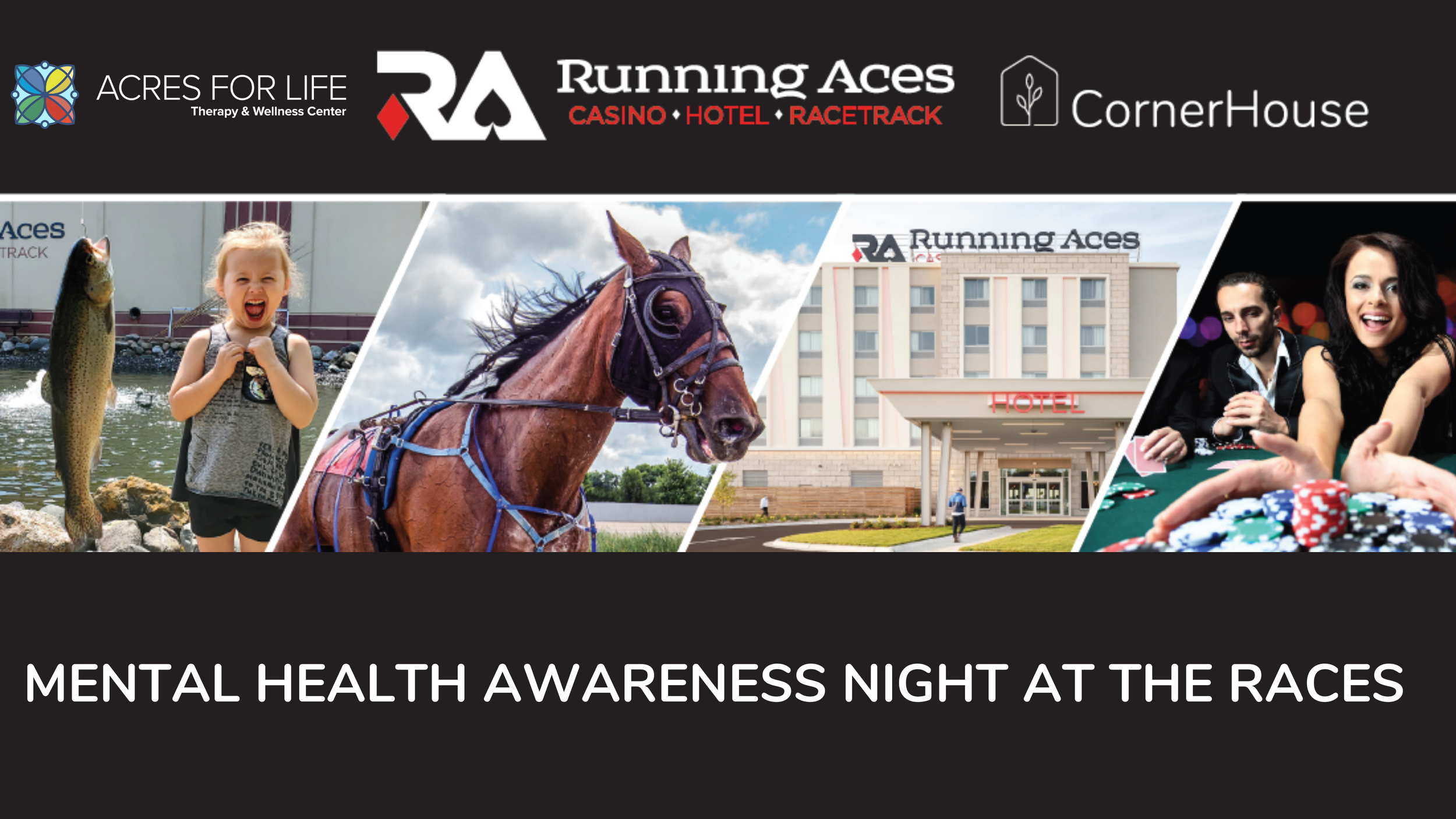JOIN US FOR A NIGHT OF LIVE HORSE RACING TO RAISE MONEY FOR MENTAL HEATH SERVICES AT CORNERHOUSE AND ACRES FOR LIFE